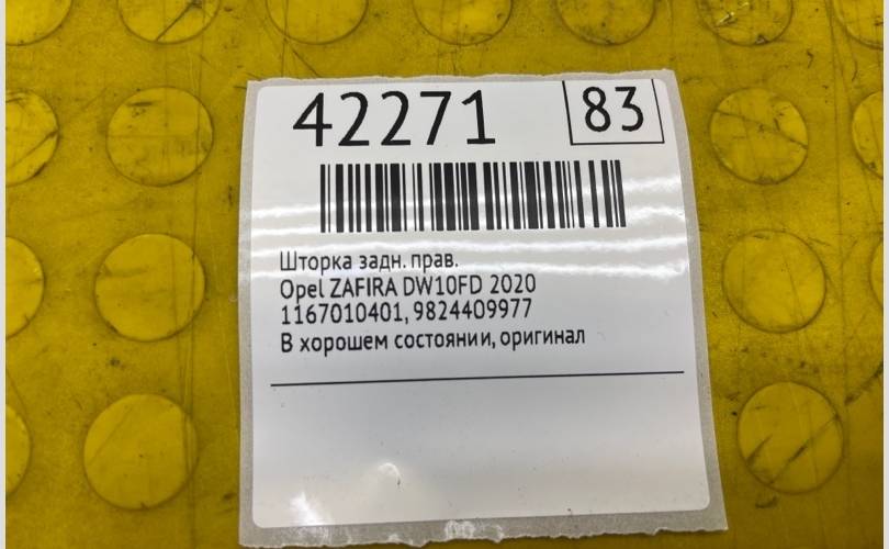 Шторка Opel ZAFIRA Life 2020 9824409977 DW10FD, задняя правая