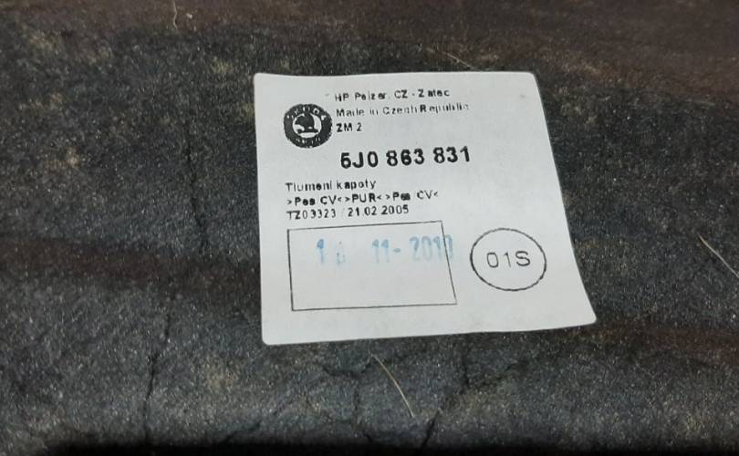 Шумоизоляция капота Skoda Fabia 2 5J0863831, передняя