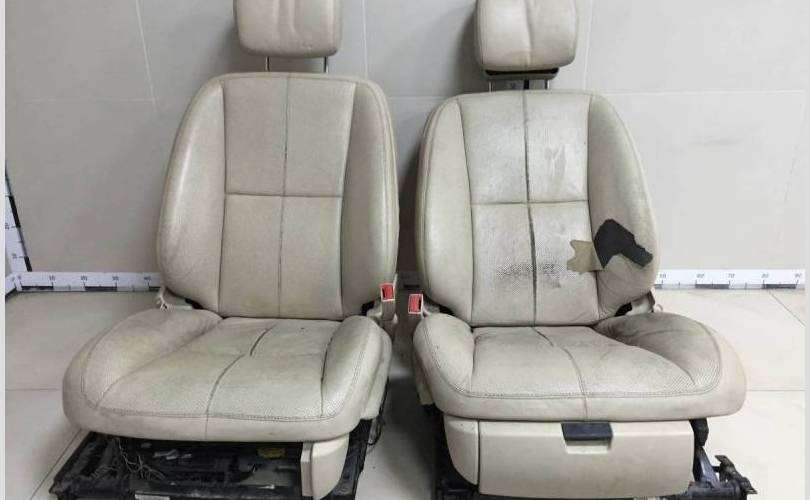 Комплект передних сидений. С электроприводом. Кожа. Повреждения на коже, погнуты салазки на водительском сиденьи.