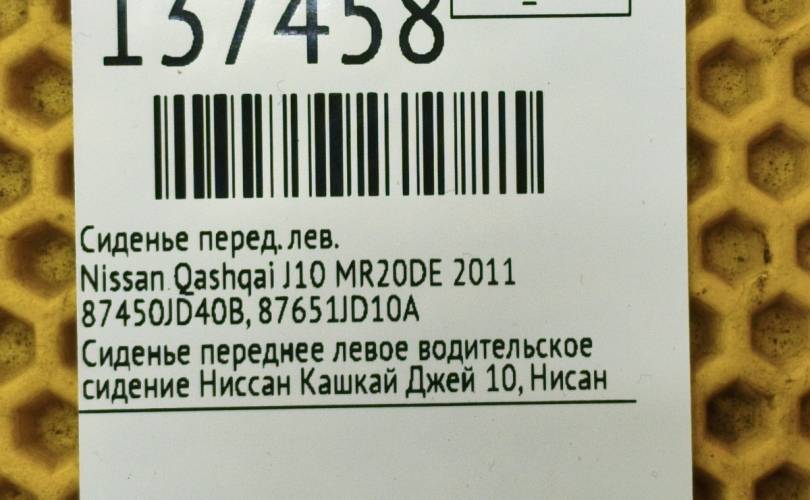 Сиденье Nissan Qashqai 2007 87450JD40B J10 MR20DE, переднее левое
