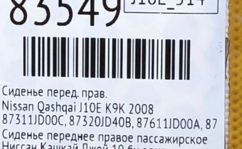 Сиденье Nissan Qashqai 2008 87311JD00C J10E K9K, переднее правое