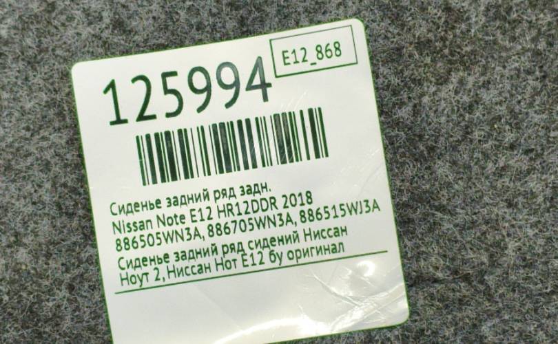 Сиденье задний ряд Nissan Note 2018 886505WN3A E12 HR12DDR, заднее