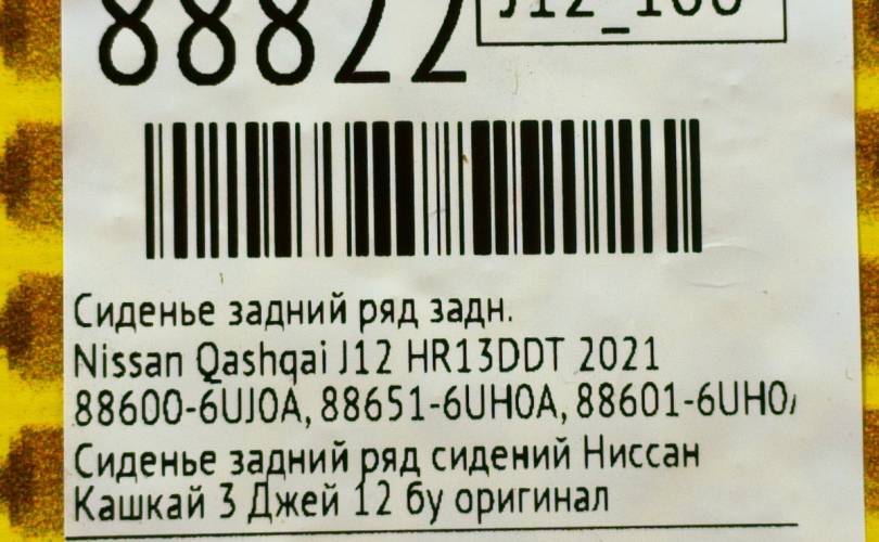 Сиденье задний ряд Nissan Qashqai 2021 886006UJ0A J12 HR13DDT