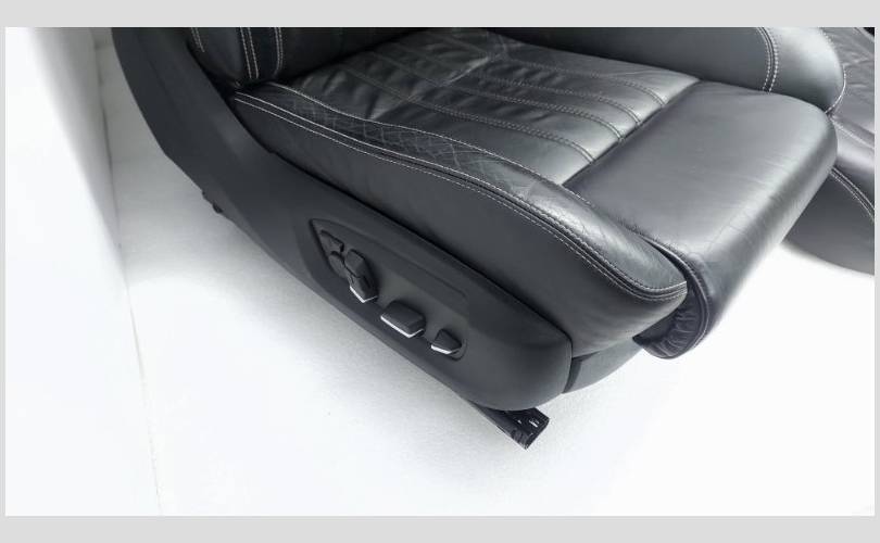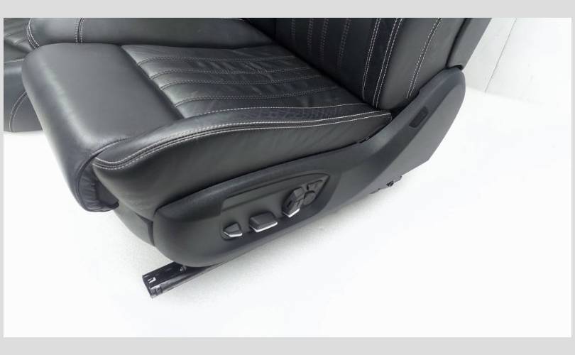 Состояние хорошее, оригинал. Есть потёртости, вмятины сидений, дефекты креплений задних боковых спинок. Сидения в М-стиле, обивка кожа, цвет черный. Передний ряд оборудован электрорегулировкой, подушками безопасности, спинками ломайками, подколенной опорой, с памятью. С обогревом всех сидений.