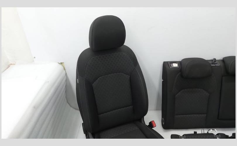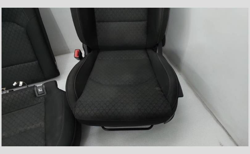 Комплект сидений. Состояние хорошее, оригинал. Требуется химчистка. Присутствует повреждение на обивке кармана водительского сиденья. Первый ряд оснащен обогревом, механической регулировкой и подушками безопасности. Имеется система Isofix. Сидения, салон.