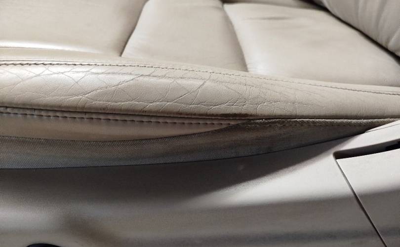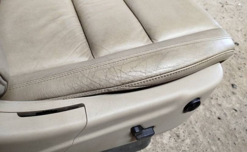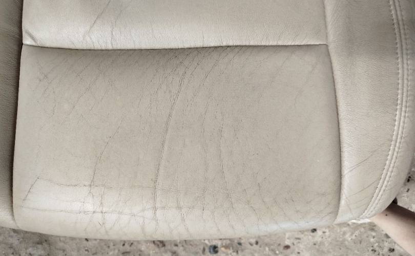 Кожаные, бежевые, с электроприводом и обогревом.