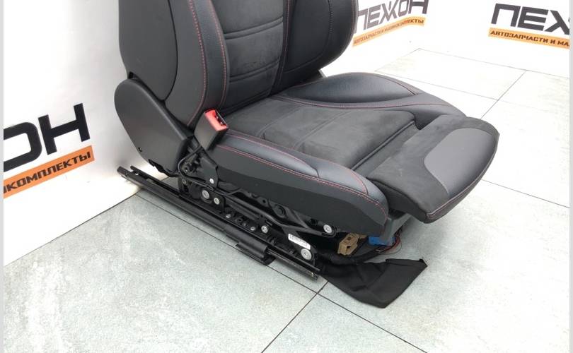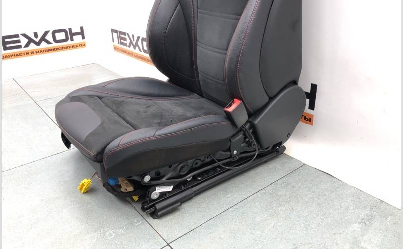 Сиденье водителя (левое) с электрорегулировкой положения и функцией памяти, ткань / иск.кожа / микрофибра черная/«антрацит», подогрев сиденья водителя и переднего пассажира, эргономический пакет, сиденье переднего пассажира с функцией распознавания веса, пакет функций памяти (сиденье водителя, рулевая колонка и зеркала), отделка салона «AMG Line» / спорт-пакет отделки салона AMG, регулировка поясничного подпора спереди
