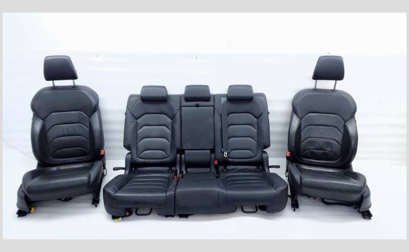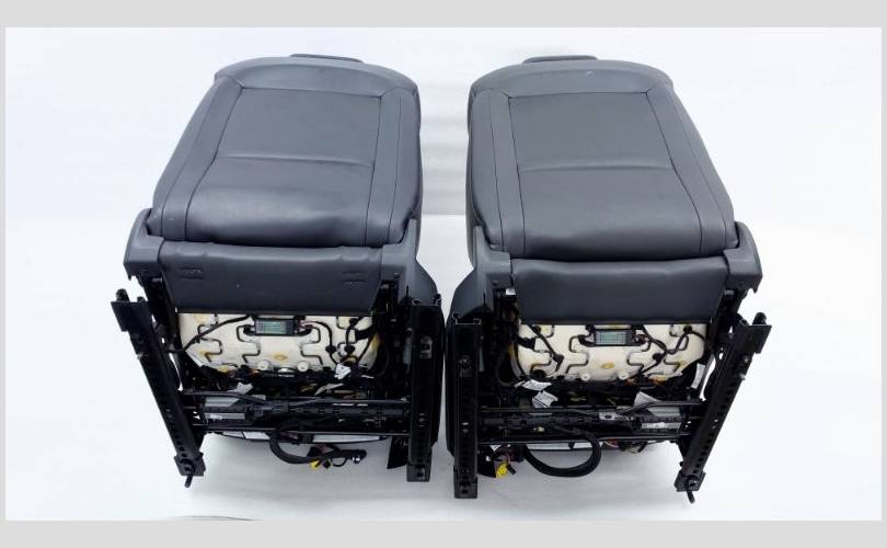 Состояние отличное, оригинал. Подголовник переднего пассажира зацарапан. Материал кожа, цвет черный. Передний ряд оборудован электрорегулировкой, подушками безопасности, памятью, поясничной опорой. Все сиденья с обогревом.