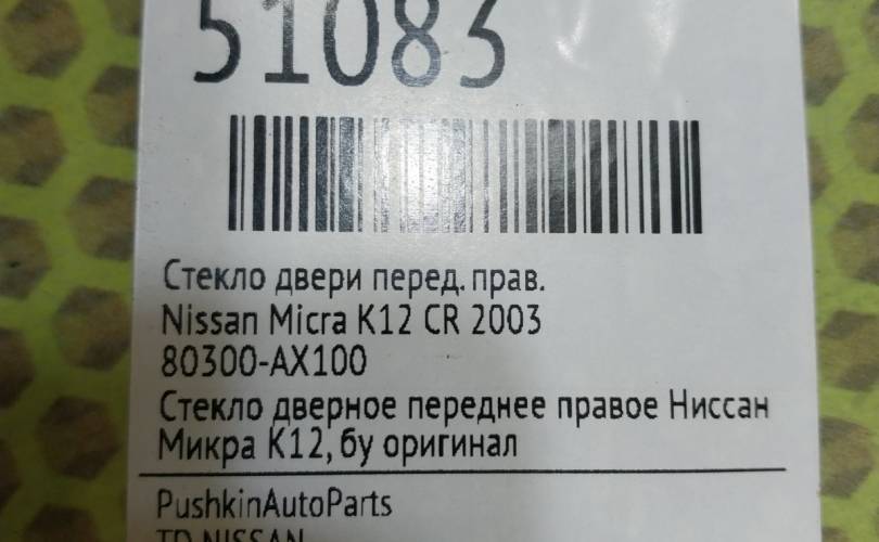 Стекло двери Nissan Micra 2003 80300AX100 K12 CR, переднее правое