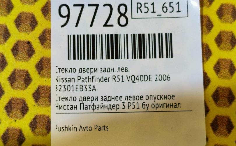 Стекло двери Nissan Pathfinder 2006 82301EB33A R51 VQ40DE, заднее левое