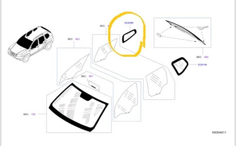 Стекло кузовное глухое Nissan Terrano 2022 8330000Q0B D10 H4MD 438P160913, заднее правое