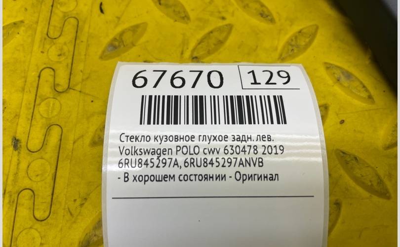 Стекло кузовное глухое Volkswagen POLO 2019 6RU845297A 6C1 CWV 630478, заднее левое