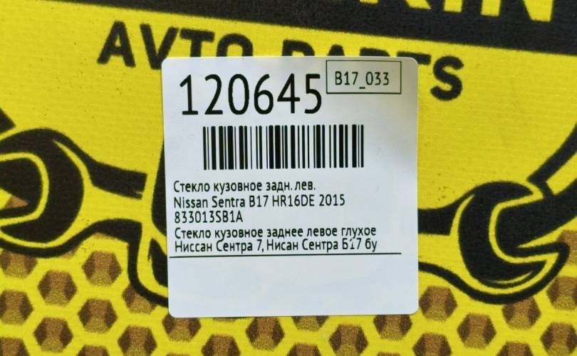 Стекло кузовное Nissan Sentra 2015 833013SB1A B17 HR16DE, заднее левое