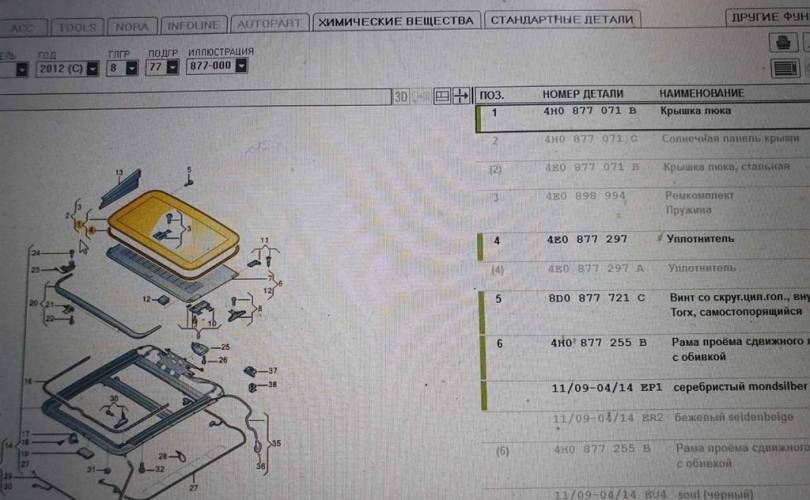 Стекло люка Audi A8 D4 (2010—2014) 4,2