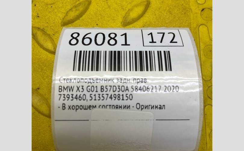 Стеклоподъемник BMW X3 2020 51357498150 G01 B57D30A 58406217, задний правый