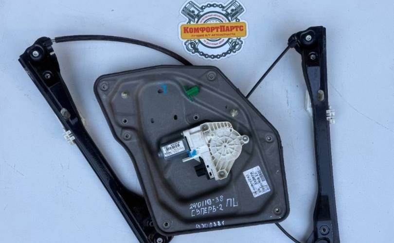 Стеклоподъемник двери передней левой электрический, трапеция в сборе с моторчиком, бу оригинал для Шкода Суперб Т3 Skoda Superb T3 2 II (2008 2009 2010 2011 2012 2013 2014 2015 год)