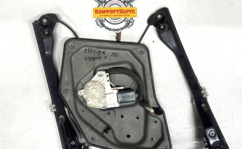 Стеклоподъемник двери передней левой электрический, трапеция в сборе с моторчиком, бу оригинал контрактный для Шкода Суперб Т3 Skoda Superb T3 2 II 2008-2015 (2008 2009 2010 2011 2012 2013 2014 2015 год)