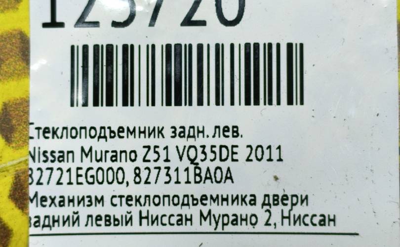 Стеклоподъемник Nissan Murano 2011 82721EG000 Z51 VQ35DE, задний левый