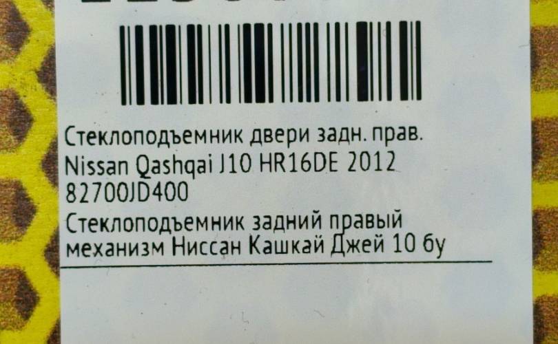 Стеклоподъемник Nissan Qashqai 2012 82700JD400 J10 HR16DE, задний правый