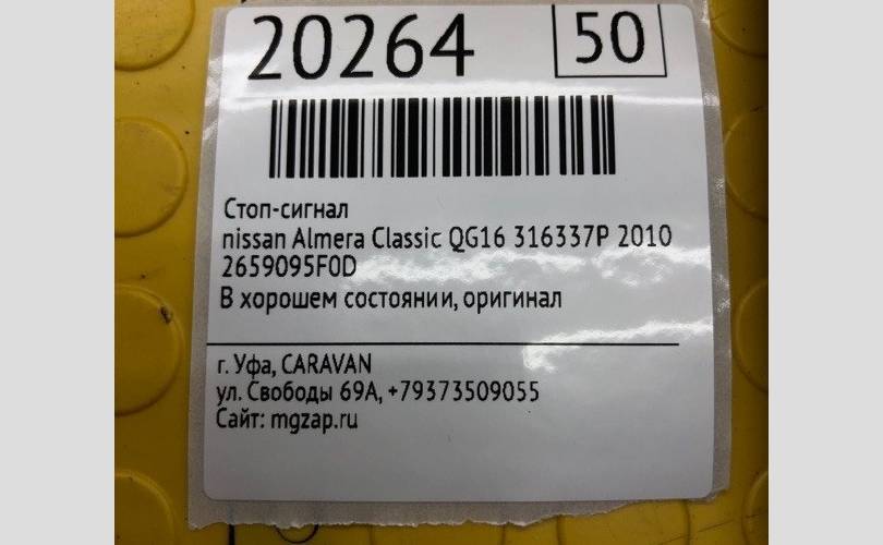 Стоп-сигнал Nissan Almera Classic 2010 2659095F0D QG16 316337P