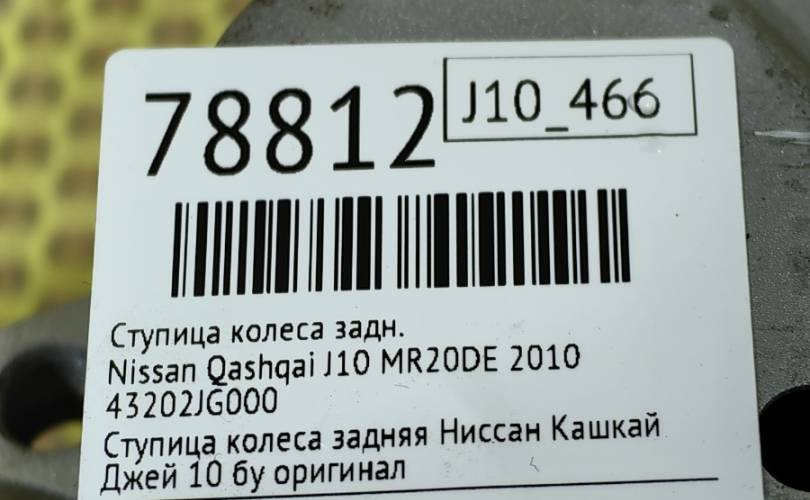 Ступица Nissan Qashqai 2010 43202JG000 J10 MR20DE, задняя правая