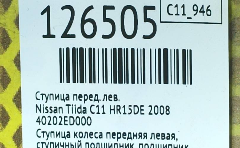 Ступица Nissan Tiida 2008 40202ED000 C11 HR15DE, передняя левая
