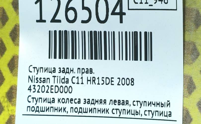 Ступица Nissan Tiida 2008 43202ED000 C11 HR15DE, задняя правая