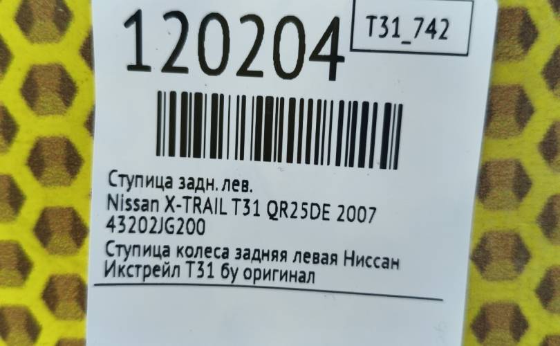 Ступица Nissan X-TRAIL 2007 43202JG200 T31 QR25DE, задняя левая