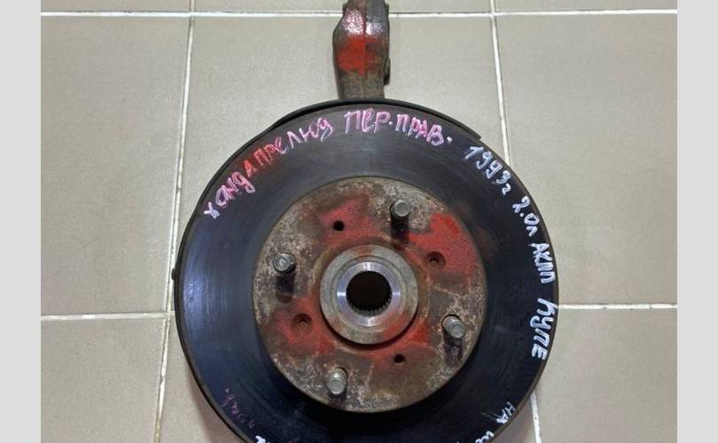 Ступица передняя правая, поворотный кулак в сборе. Разбор Honda Prelude 1993 года (Хонда Прелюд 1993 года), двс F20B 2.0 л., акпп MP1A-2013667, передний привод, кузов BA8 купе, правый руль.