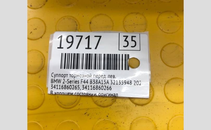 Суппорт тормозной BMW 2-Series 2020 34116860265 F44 B38A15A, передний левый