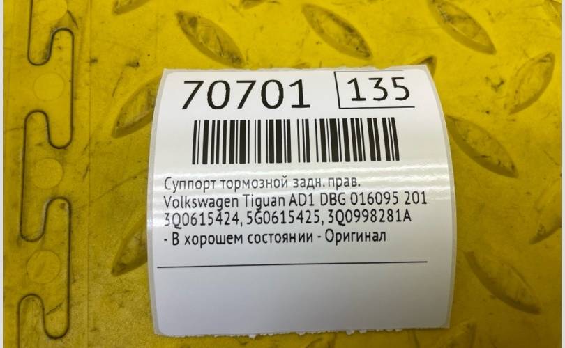 Суппорт тормозной Volkswagen Tiguan 2018 3Q0615424 AD1 DBG016095, задний правый