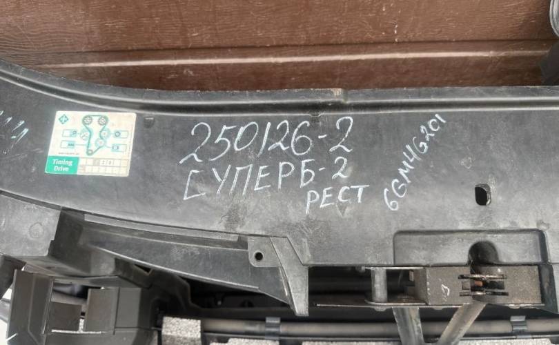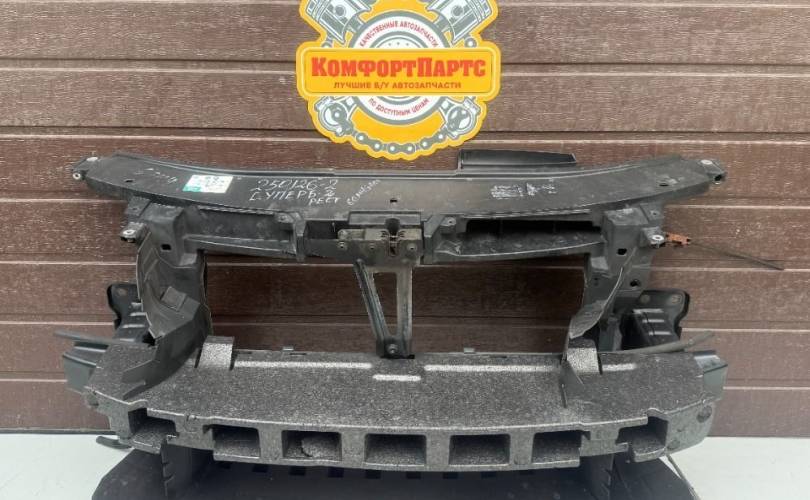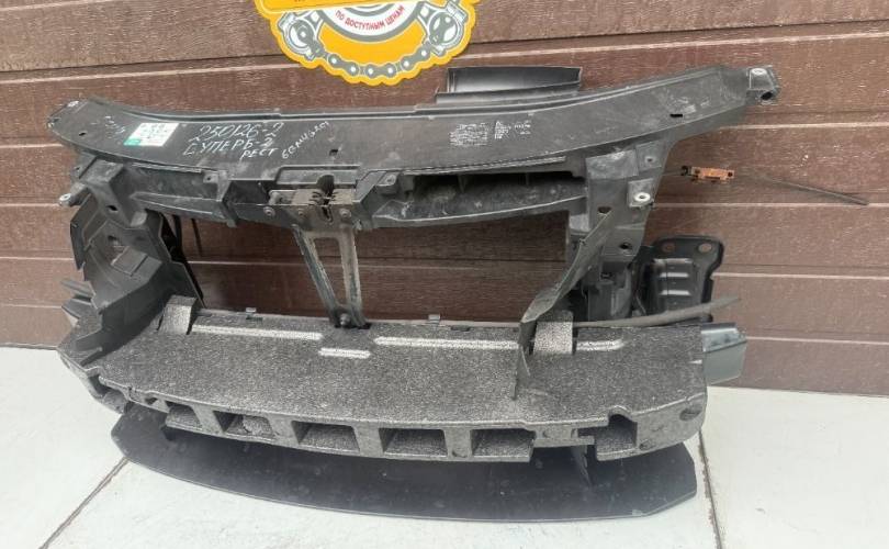 Рамка (панель) передняя (телевизор), Рестайлинг 2013-2015г, в сборе с усилителями, без абсорбера, и направляющих потока воздуха левой и правой бу оригинал контрактный для Шкода Суперб Т3 Skoda Superb T3 2 II 2013-2015 (2013 2014 2015 год)