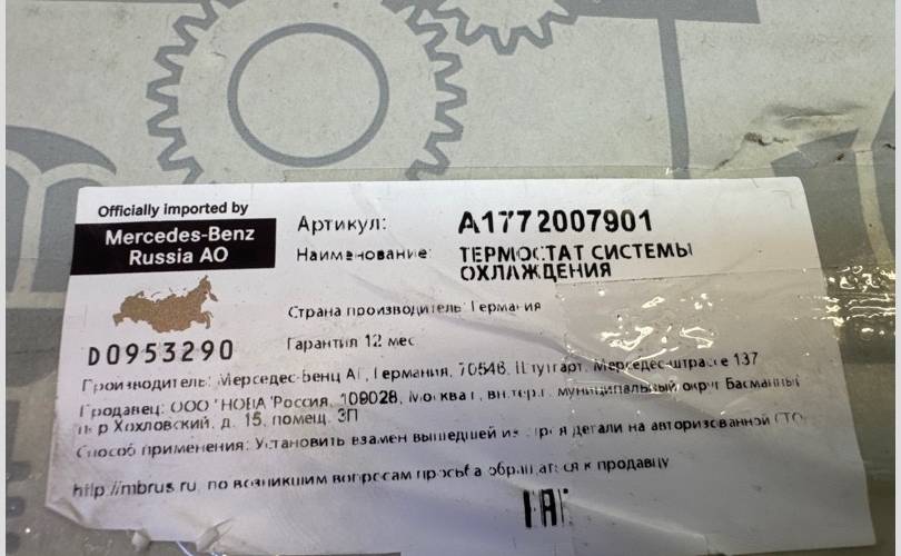 Термостат Mercedes-Benz AMG GT 2017-2023 X290