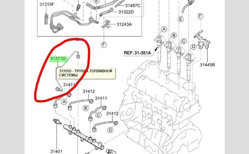 Топливная трубка Hyundai Santa Fe 2019 314252F600 TM D4HBKU932189