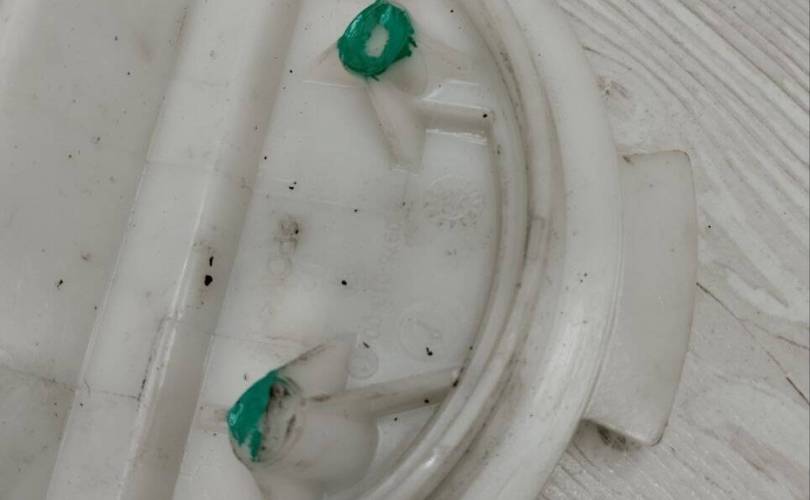 Обломана крышка и ножка крышки, на фото выделено зеленым маркером