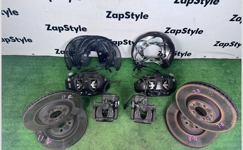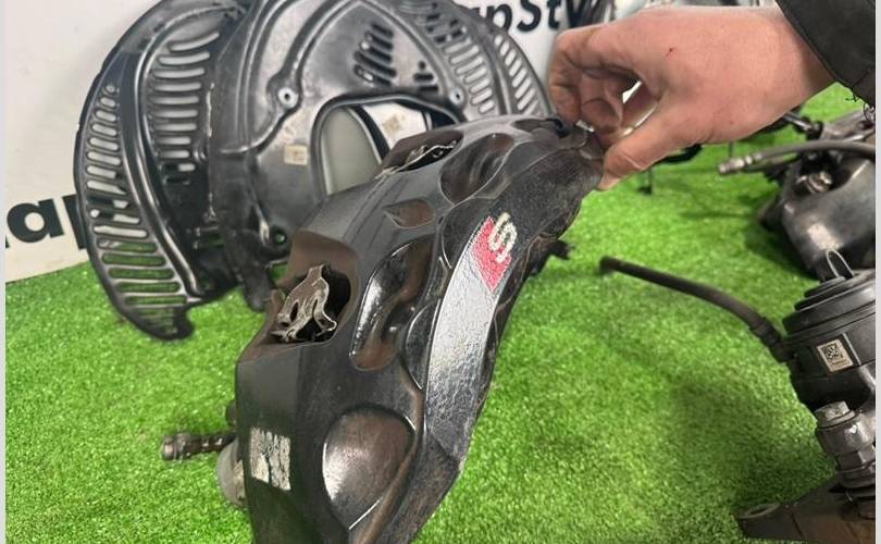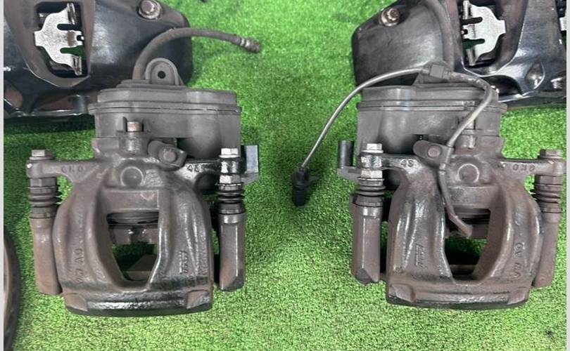 Комплект тормозов ауди а4 акебона передние 6 поршневые суппорта, колодки диски оригинал с небольшим остатком 33мм размер 350 мм , задние диски небольшой износ остаток 22мм ,колодки половину, оригинал 330 мм