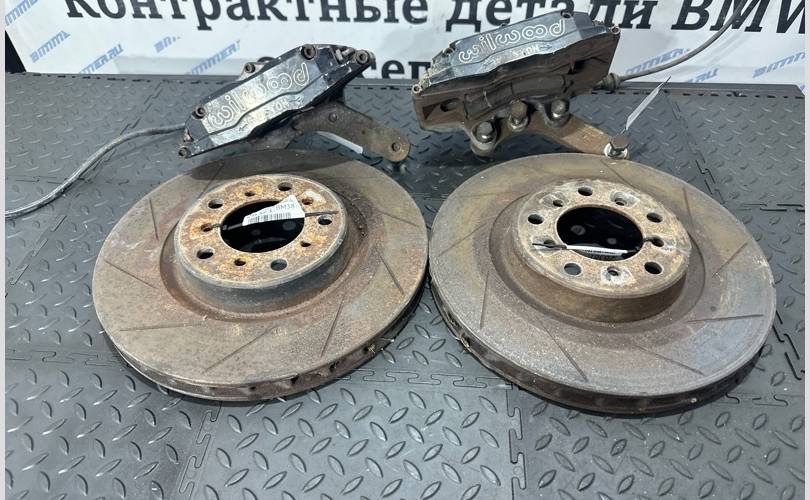 Деталь контрактная. В отличном состоянии, на фото именно эта деталь. Диски 325мм/28мм. Скобы крпеления суппорта в комплекте, встает без доработок на любой кулак BMW E46.