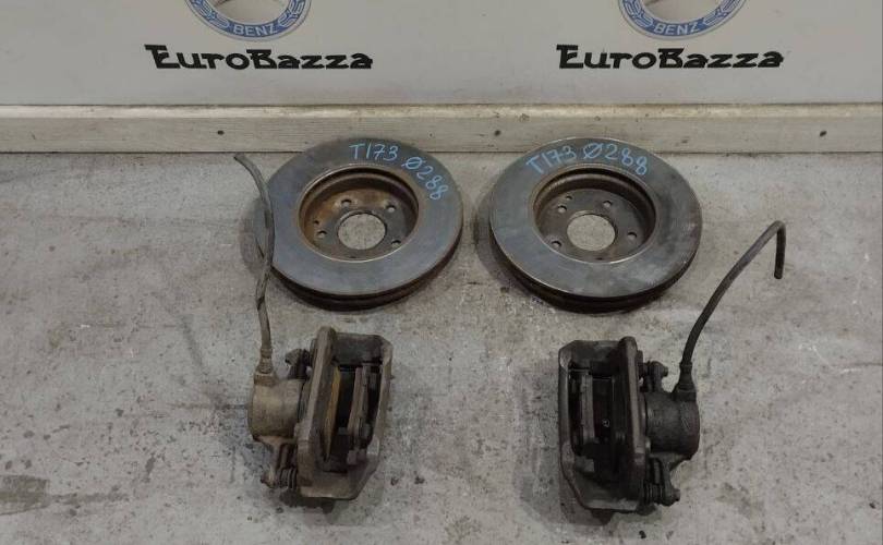 передняя тормозная система тормозной суппорт тормозной диск суппорта тормоз переднего колеса скоба 288мм тормозной диск левый правый спереди слева справа Mercedes 203 Мерседес