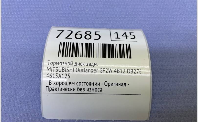 Тормозной диск MITSUBISHI Outlander 2021 4615A125 GF2W 4B12 DB2762, задний