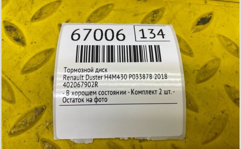 Тормозной диск Renault Duster 2018 402067902R H4M430 P033878