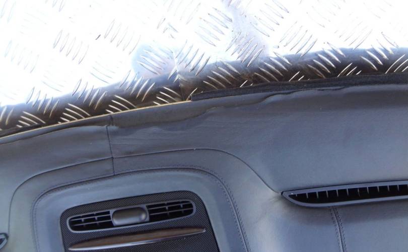 Повреждение в районе центрального динамика, под лобовым стеклом.