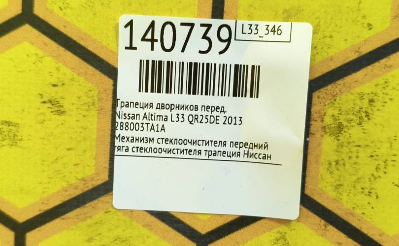 Трапеция дворников Nissan Altima 2013 288003TA1A L33 QR25DE, передняя