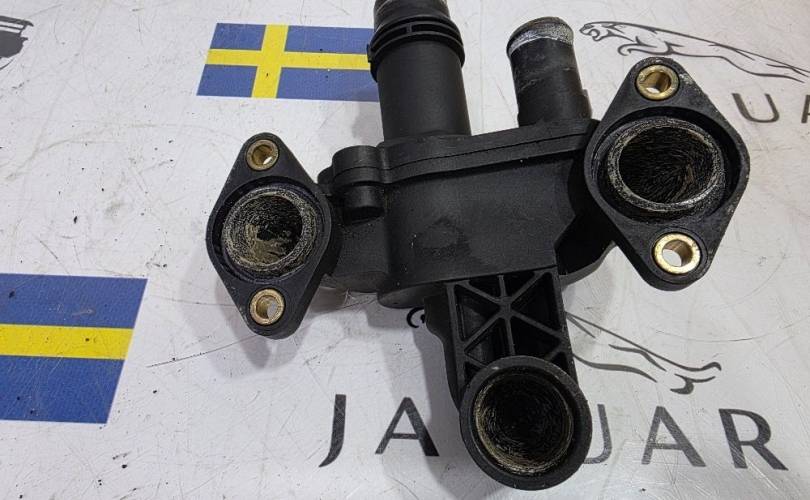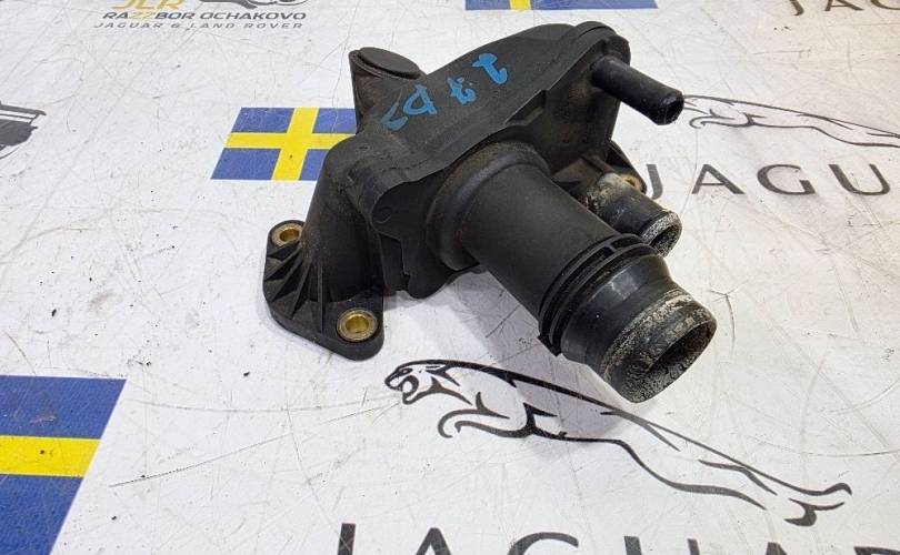 Тройник системы охлаждения корпус термостата термостат фланец паук кругов охлаждения соединение выпуска воды Jaguar Jeguar Ягуар Егуар Эстайп эс тайп эстейп хф х ф X F 1 2 X J иксжей икс джей иксджей Ланд Ленд Лжнд Ровер Дискавери Дисковери Дискарь Диско 3 4 Ранж Ренж Рэйндж Рэнж Спорт 1 2 4