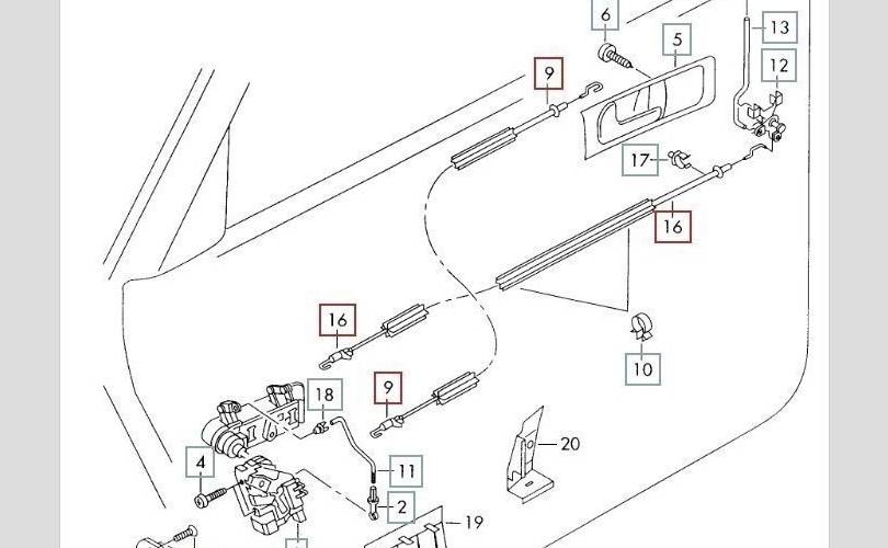 Трос внешней ручки двери.
