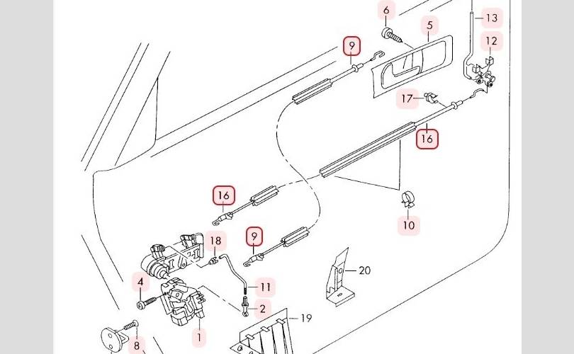 Трос замка задней правой двери .