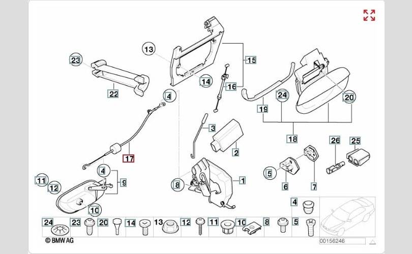Трос замка задней левой двери .