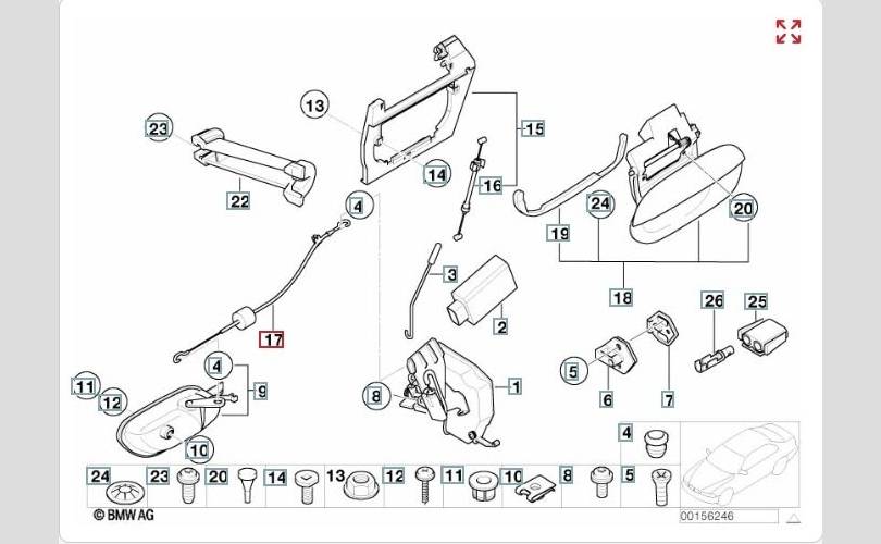 Трос замка задней правой двери .