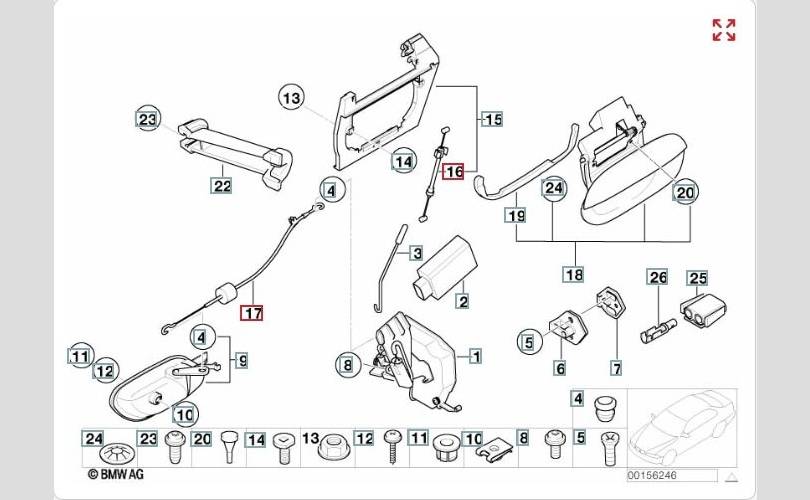Трос внешней ручки двери.