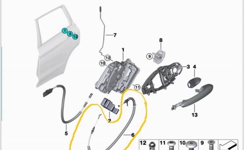 Трос замка двери BMW X3 2019 51227409274 G01 B47D, задний