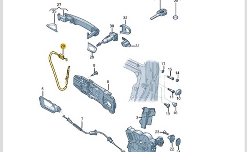 Трос замка двери Skoda Octavia 2017 7N0837017B 5E3 CJSA, передний